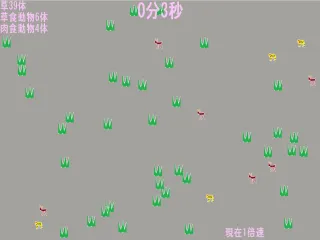 FOOD CHAINは肉食動物、草食動物、草の数を設定し、どれだけ生態系が維持できるか試行するシミュレーションゲームです。